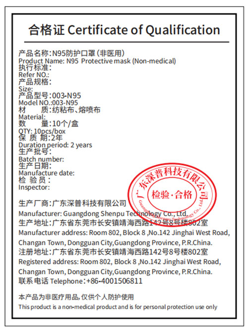 របាំងការពារ N95 ( ទ្រង់ទ្រាយរាង up |
